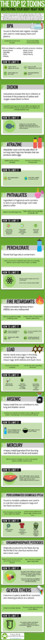 The infographic below showcases the top 12 toxins that you need to be aware of, and some tips that you can use to help steer clear of them: