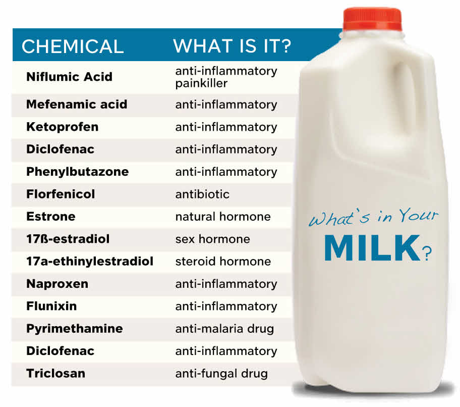 A great example, just take a look at some of the typical toxins, and drug residues found in the typical bottle of milk:
